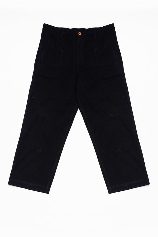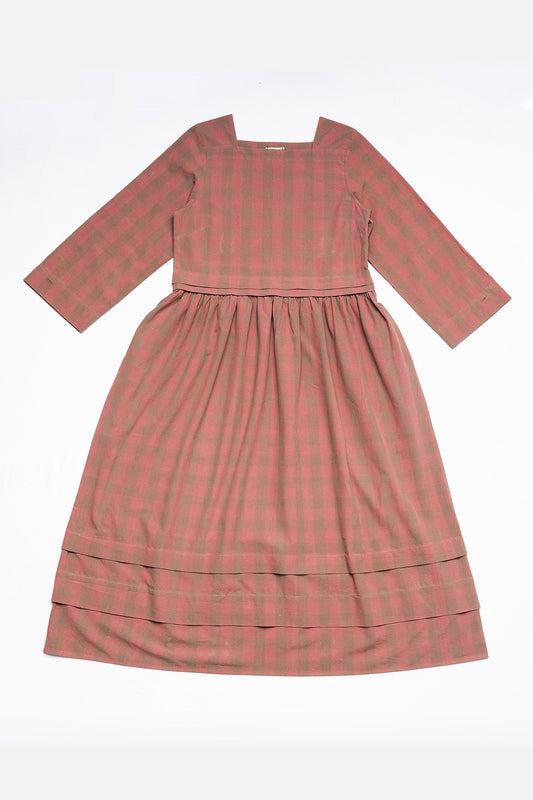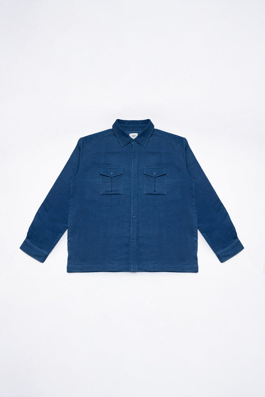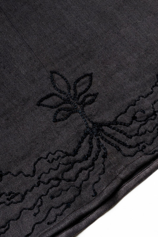 Hand-Embroidered Boat Neck Dress, in Indigo